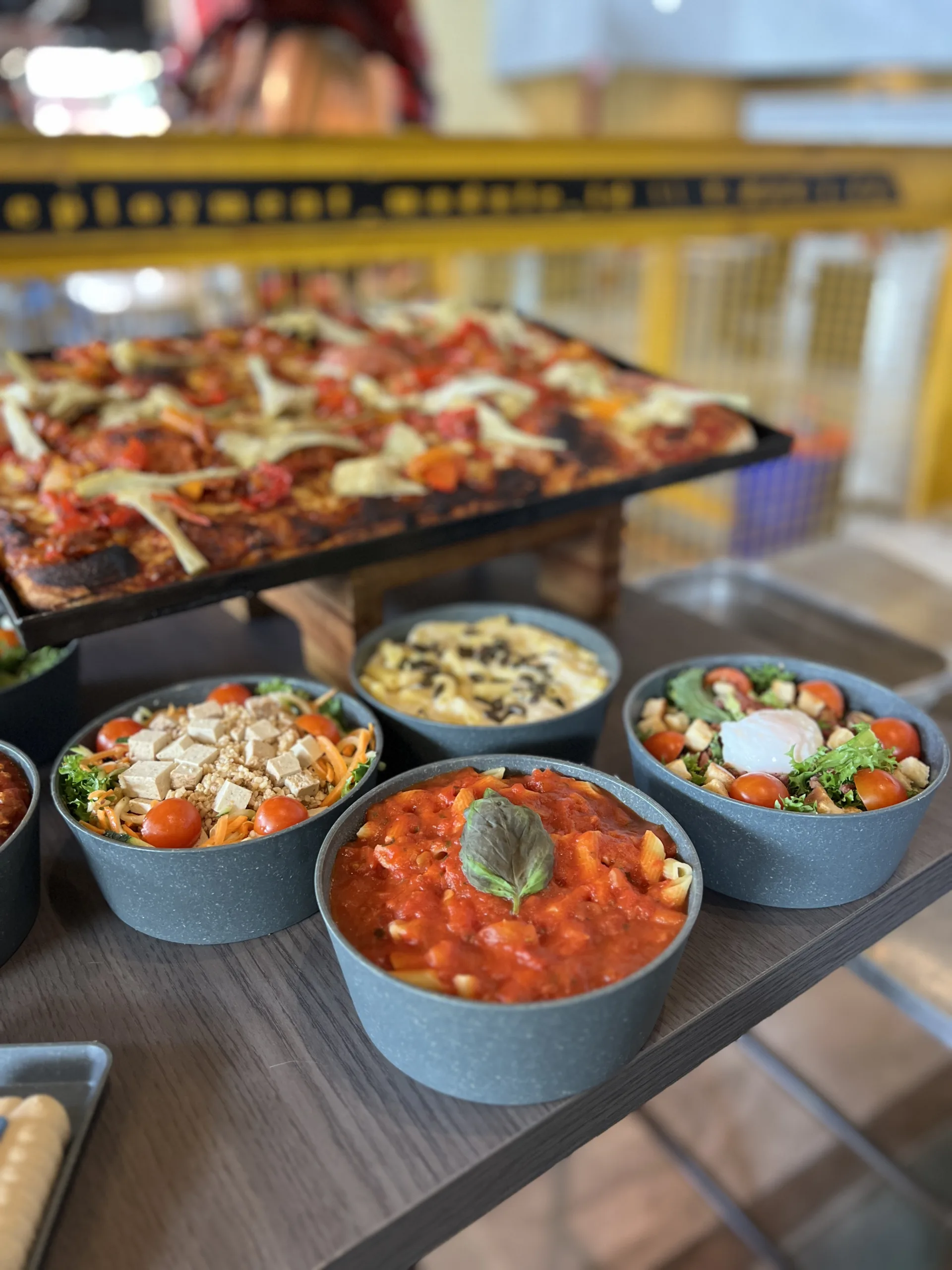 Au menu, des pizzas napolitaines préparées avec soin, directement sur place. La farine provient d’un moulin italien, et la pâte, qui bénéficie d’une fermentation de 48 heures, leur donne une texture parfaitement aérée. À noter, cependant, qu’une part de pizza vous coûtera 14 €. Pour ma part, j’ai adoré la pizza stracciatella, garnie de sauce tomate, mozzarella et olives noires !
